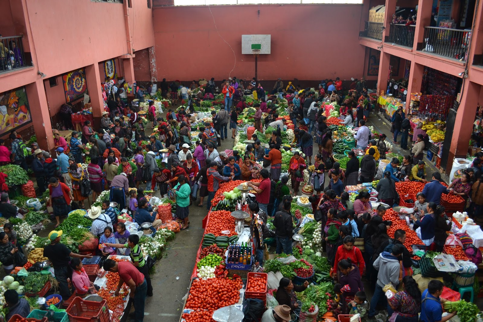 Lo más bonito para mi, además de la iglesia, fue una feria interior, con verduras y frutas frescas y brillantes (y de colores), cuyo movimiento sin fin se podía mirar del segundo piso, tal como las pinturas que vendían en Antigua.